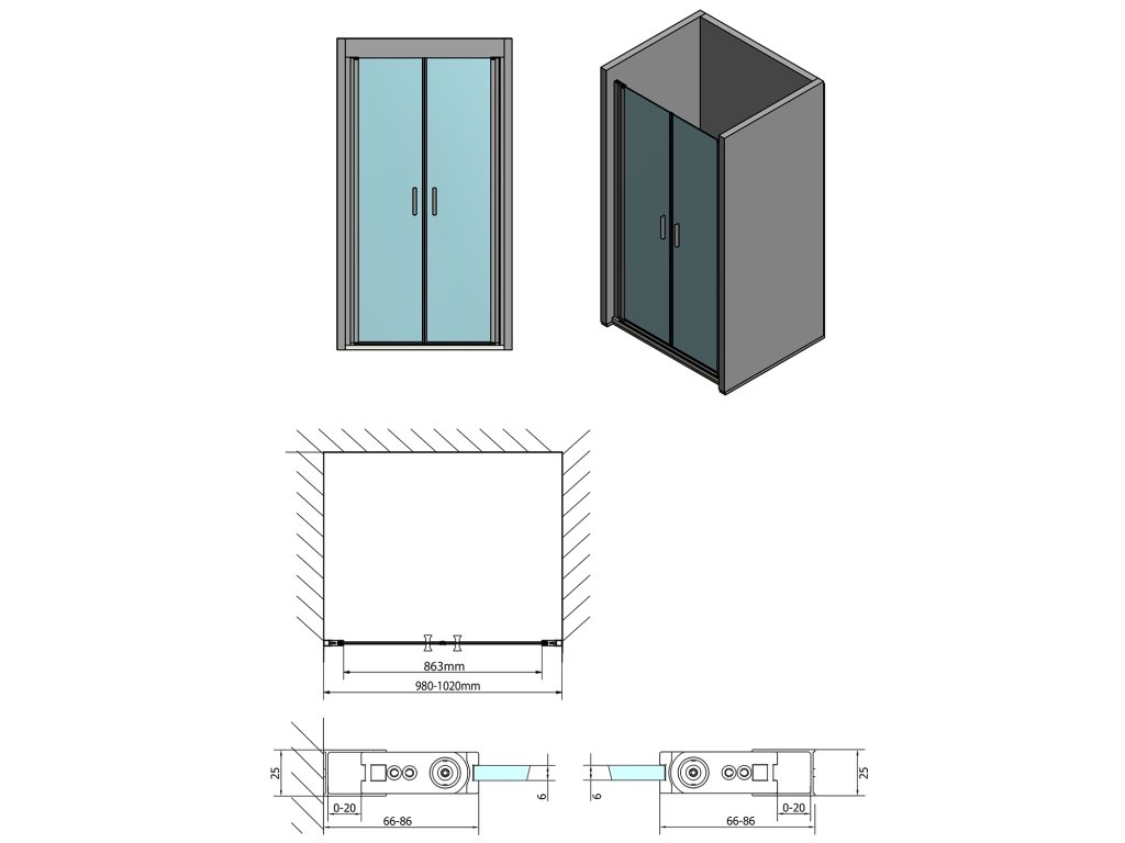 • Dvoukřídlé dveře 800, 900, 1000 a 1200 mm jsou vhodné pouze pro instalaci do niky, nelze je kombinovat s boční stěnou