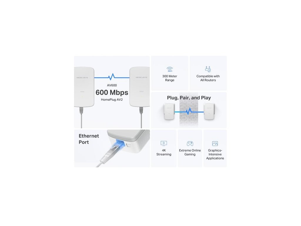 Powerline ethernet TP-Link Mercusys MP300 KIT 600Mbps, AV2, 52380632
