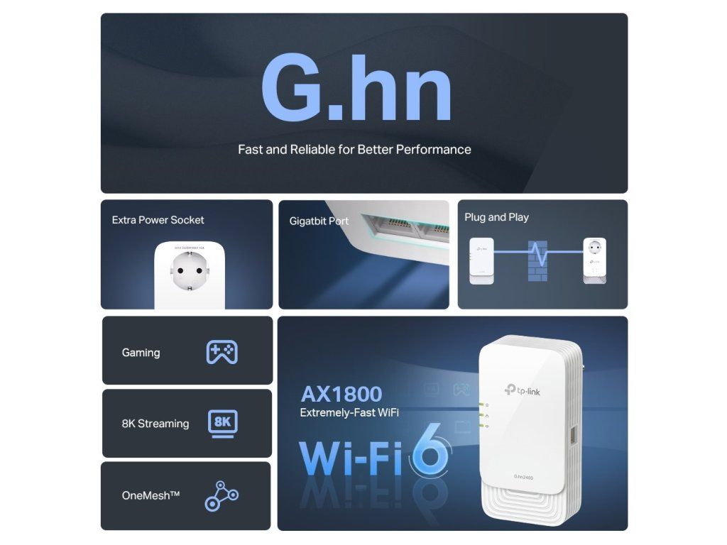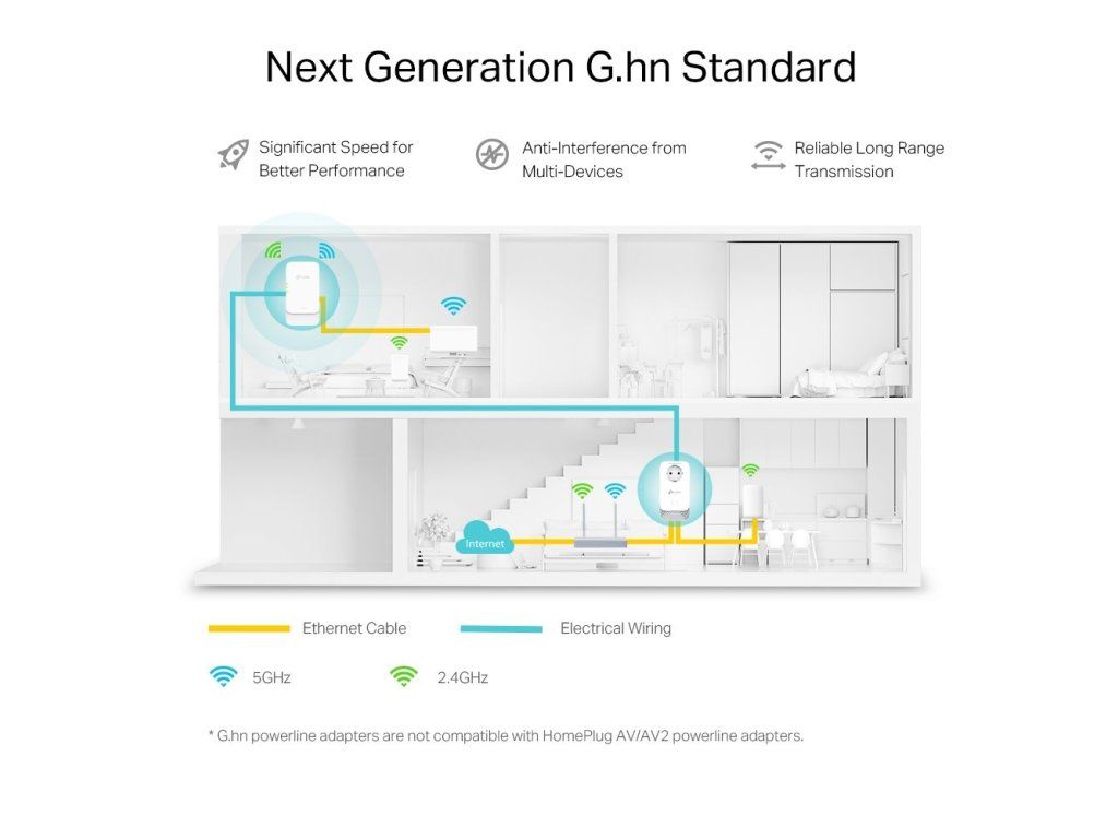 - Kompatibilita: všechny routery a G.hn Powerline adaptéry, nekompatibilní s HomePlug AV/AV2 Powerline adaptéry