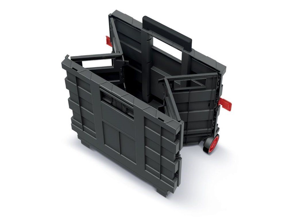 Vozík Kistenberg má skládací konstrukci. K jeho sestavení nepotřebujete žádné nástroje. Rozložení je jednoduché a rychlé. Při skladování navíc nezabere příliš prostoru. Složíte ho a umístíte do garáže, do skladu, na půdu či na jakékoliv jiné místo.