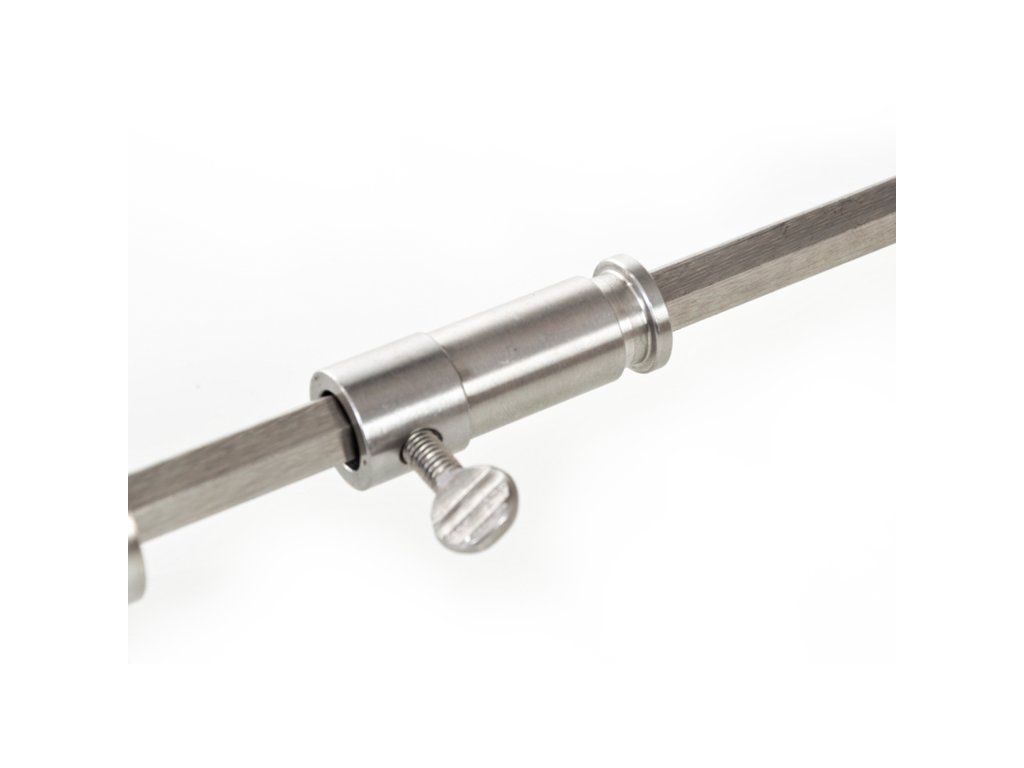 Grilovací jehla s motorem je vyrobena z nerezové oceli a z obou stran je opatřena čtyřmi jehlicemi s aretačními šrouby, díky kterým si můžete jehlice nastavit podle vlastní potřeby.