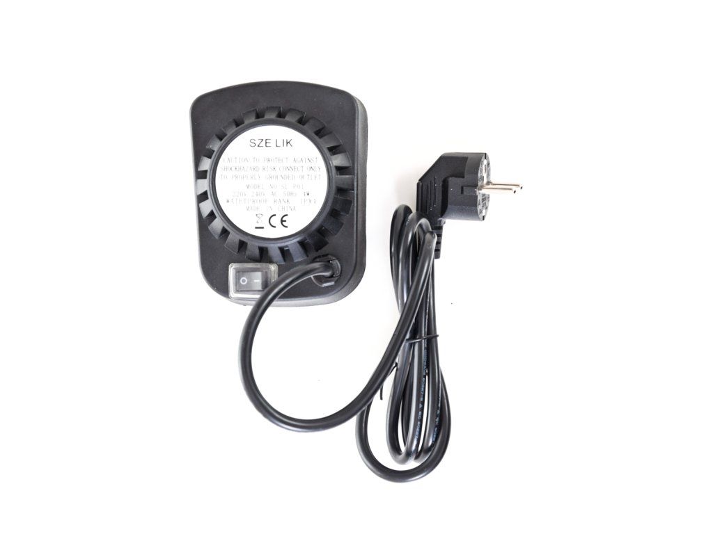 Z jedné strany je jehla opatřena odnímatelným plastovým držadlem, na kterém je praktické očko pro uchycení. Z druhé strany se nachází motorek v plastovém krytu, na kterém je umístěno tlačítko na zapínání / vypínání. Motorek s napětím 230 V jednoduše zapojíte do elektřiny pomocí kabelu v délce cca 125 cm. Motorek s jehlou otáčí rychlostí asi 2 otáčky za minutu, aby se připravovaný pokrm nepřipékal, ale pekl se rovnoměrně.