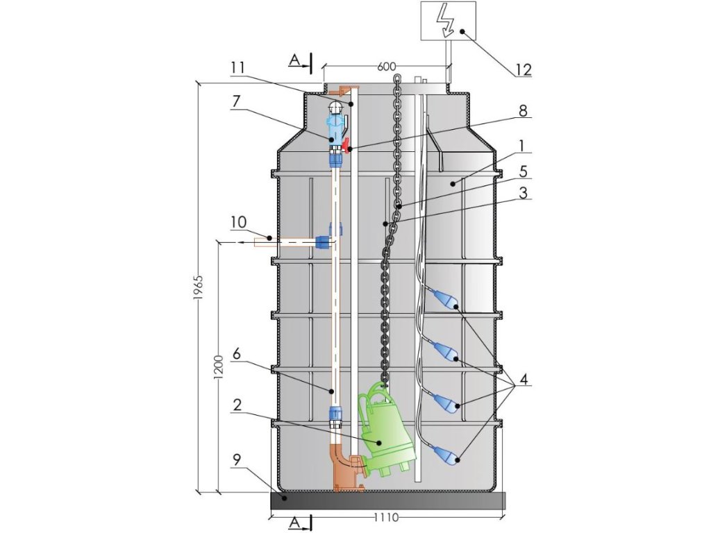 PUMPA black line Box 2 SE SEG.40.15.2.50B XTREME čerpací jímka včetně šachty a spínací skříňky, spouštěcí zařízení, plováky 4ks, 400V, 2x1,5kW, kabel 10m ZB00074134