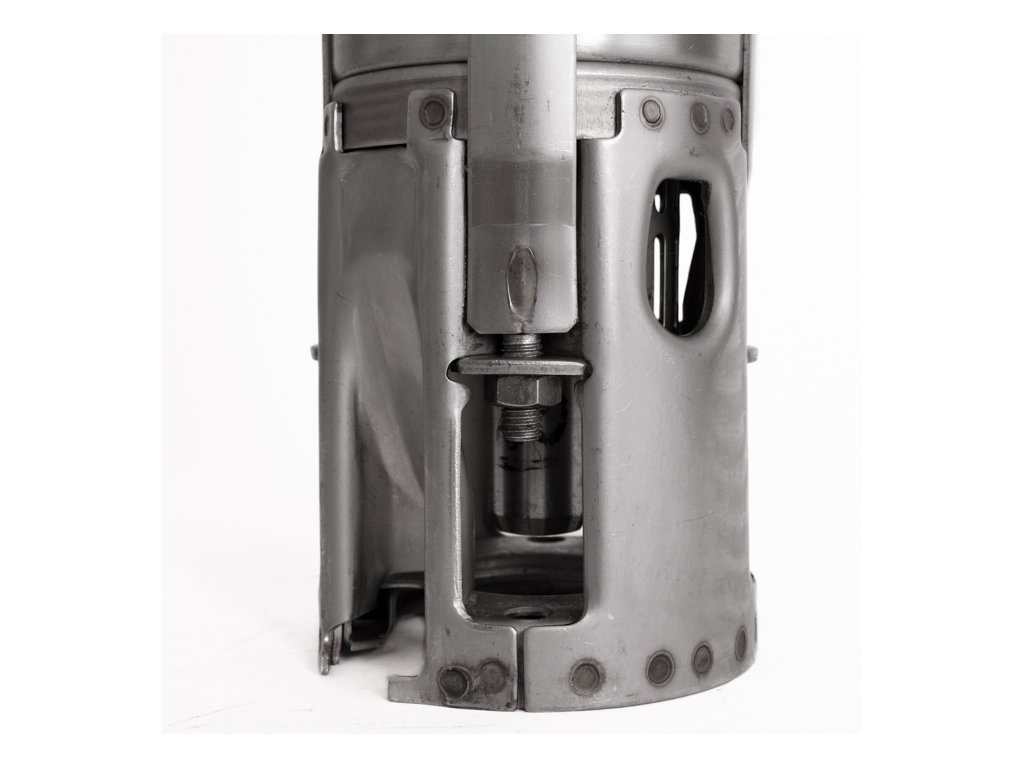 - Výtlačná hlava z nerezové oceli pro velká zatížení se zabudovaným zpětným ventilem pro vysokou životnost a snadnou instalaci