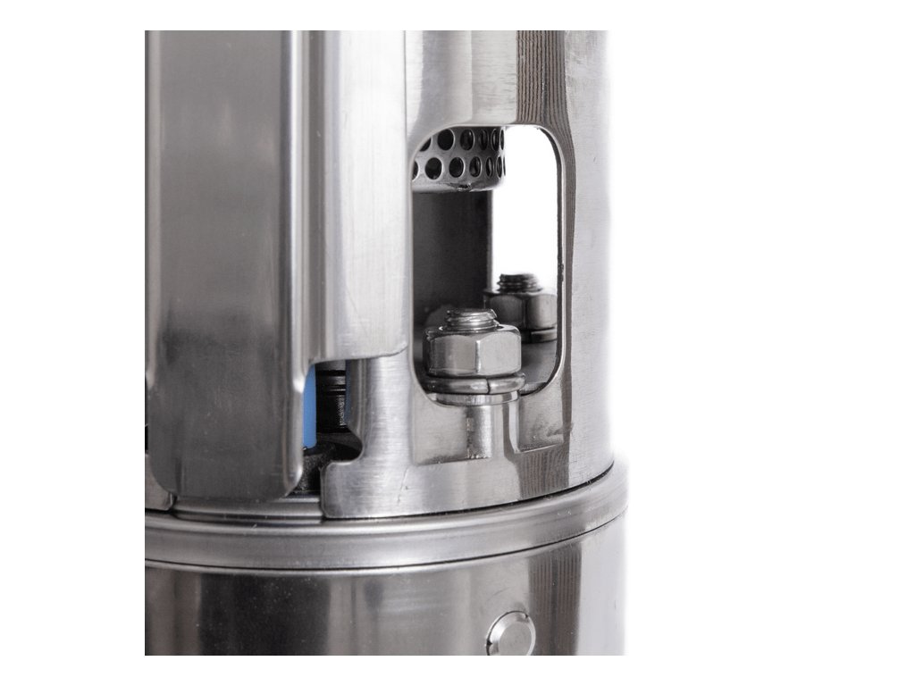 - Výtlačná hlava z nerezové oceli pro velká zatížení se zabudovaným zpětným ventilem pro vysokou životnost a snadnou instalaci