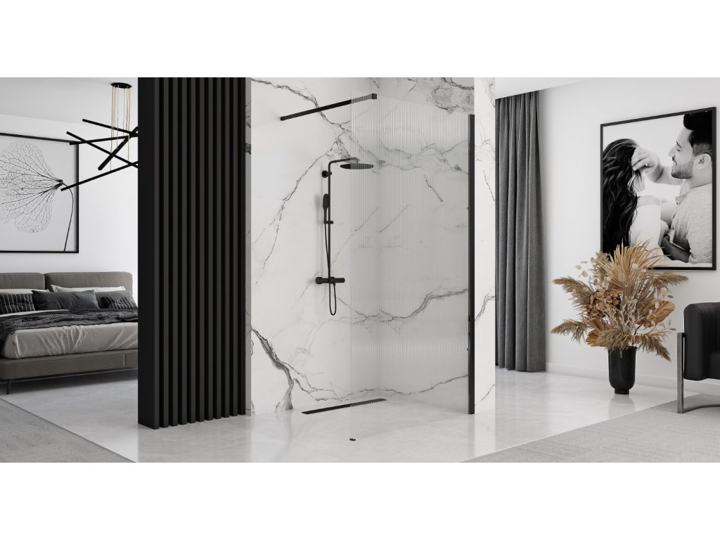 - designový sprchový kout Walk In s rýhovaným sklem