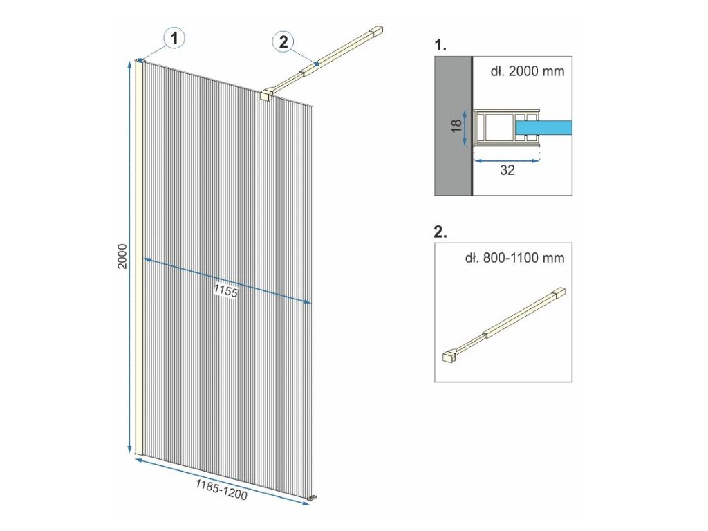 Tabulka rozměrů sprchového koutu Aero Intimo Walk In