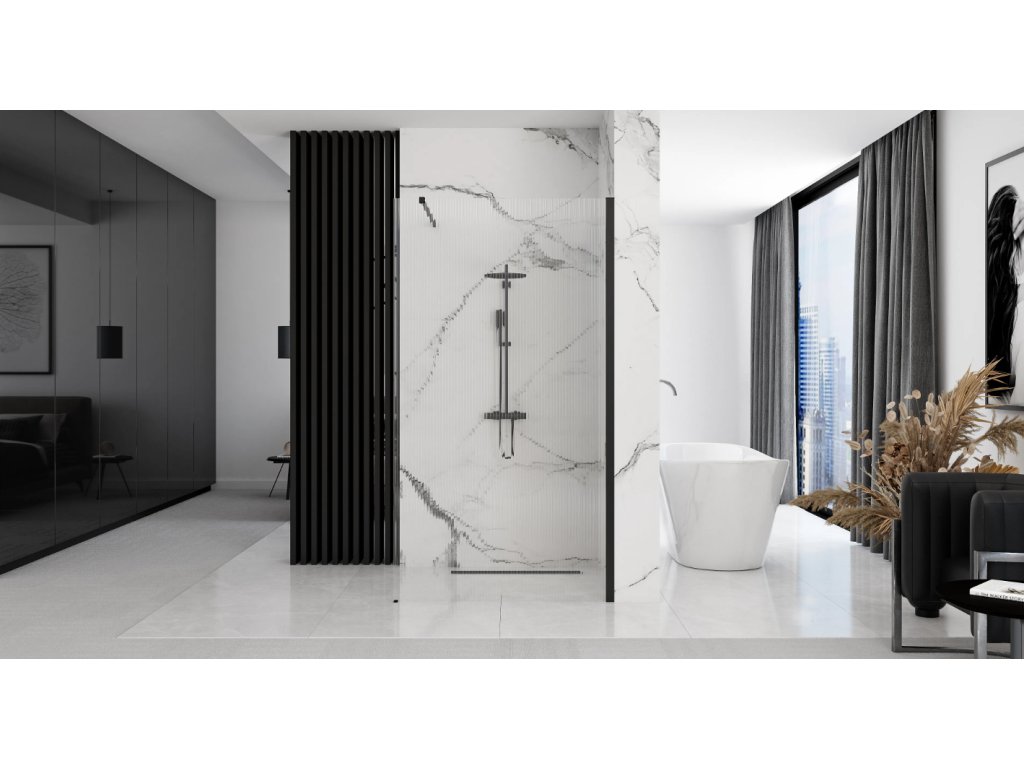 - designový sprchový kout Walk In s rýhovaným sklem