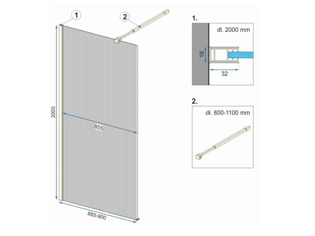 Tabulka rozměrů sprchového koutu Aero Intimo Walk In