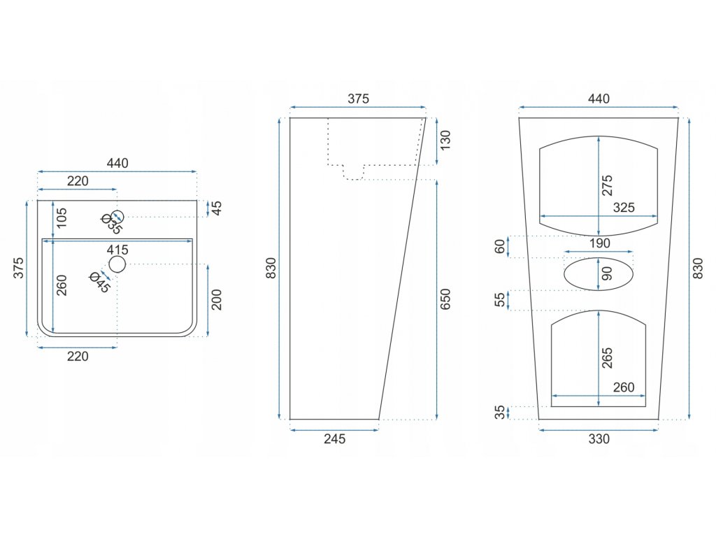 - veškeré technické specifikace neleznete v nákresu umyvadla