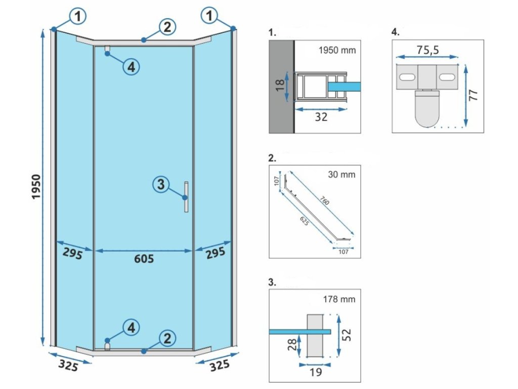 Rea Axin pětiúhelníkový sprchový kout Rozměr koutu: 90x90cm, REA-K8779