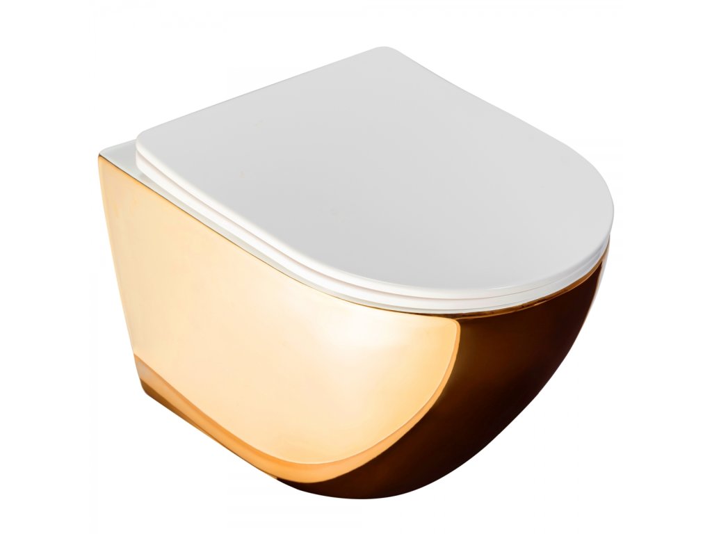 Rea Carlo Mini rimless WC závěsné se sedátkem, gold white, REA-C0669