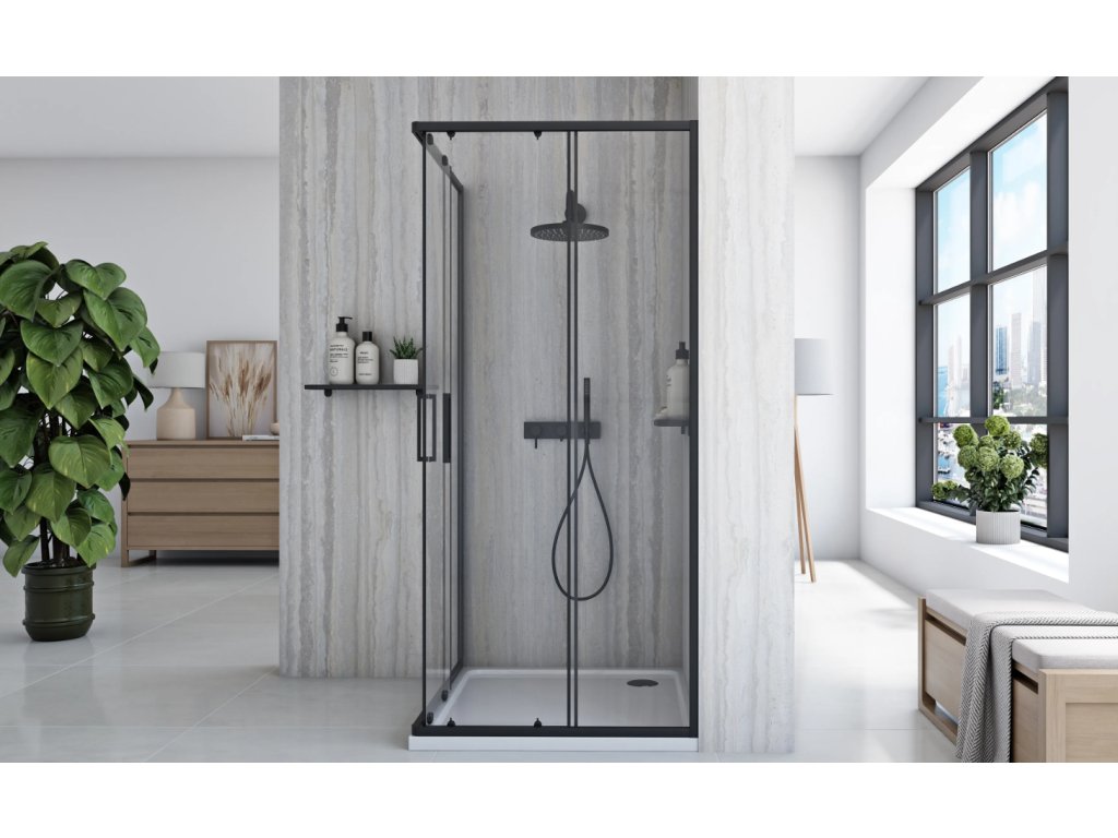 Tyto rozměry jsou jedny z nejprodávanějších a nejobvyklejších variant sprchových koutů. Poskytne dostatek místa pro pohodlné osprchování a zároveň není tolik náročný na prostor v koupelně. City je výrazný, nadčasový a designový sprchový kout, který je vyroben z těch nejkvalitnějších materiálů. Černá je hlavním lídrem na trhu interiérů koupelen a proto jeho černé profily dodají koutu ten správný nádech moderny. Skla jsou odolná vůči nečistotám, skvrnám a snadno se čistí. Kombinace černých profilů a černého svislého hranatého úchytu spolu s transparentním sklem dokonale ladí s moderní trendy koupelnou. Doporučujeme nahlédnout do naší nabídky sprchových setů.