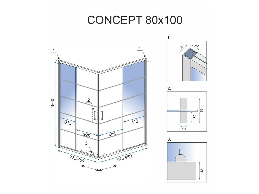 Rea Concept 100x80x195 sprchový kout, REA-K6389