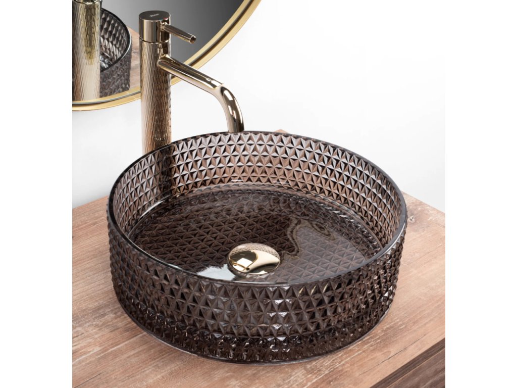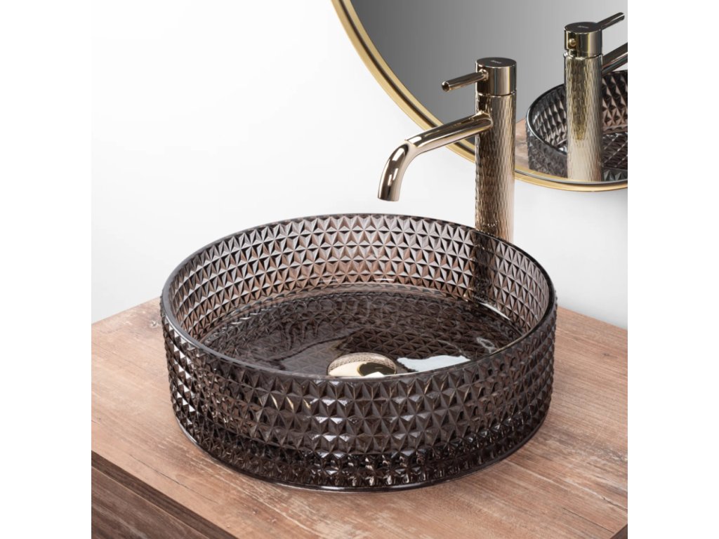 Moderní křišťálové umyvadlo Cristal se bude báječně vyjímat ve Vaší stylové koupelně. Umyvadlo je vyrobeno z vysoce kvalitního skla, přizpůsobeného k montáži na desku. Jeho zajímavý vizuální efekt podtrhne světlo odražené v krystalech. Umyvadlo s křišťálovou povrchovou úpravou se bezesporu vyznačuje jako velice zajímavý prvek do koupelny.
