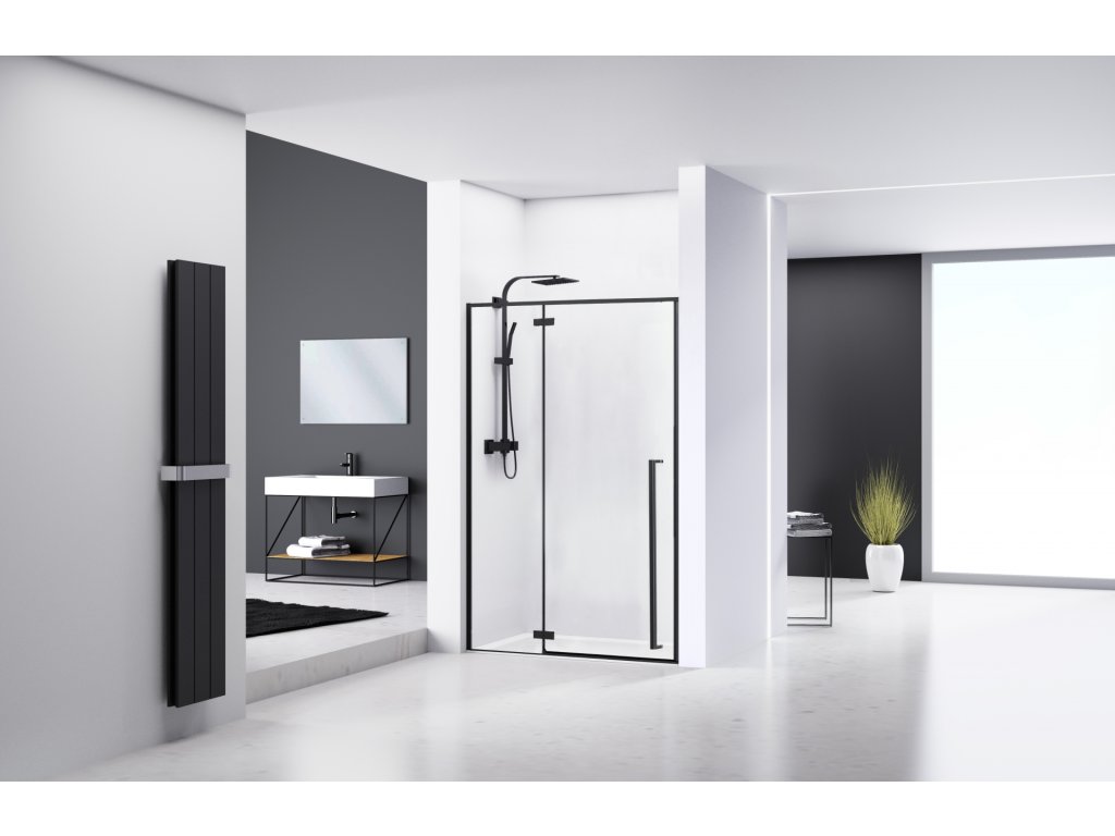 Dveře Fargo jsou vyrobeny z prvotřídního bezpečnostního skla Crystal Clear s laserovou úpravou Easy Clean - trvalá úprava skla, která zabraňuje usazování nečistot. Téměř metrový úchyt je nejen moderní a designový, ale také velmi praktický. Dveře Fargo umožňují instalaci se sprchovou vaničkou a nebo instalaci přímo na podlahu s použitím odtokového žlabu, k čemuž se přikláníme více, ale záleží zde pouze na Vašich prioritách. Černá je hlavním lídrem na trhu interiérů koupelen a proto jsou dveře Fargo velice nadčasová a moderní záležitost.