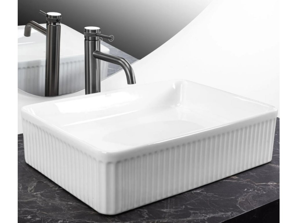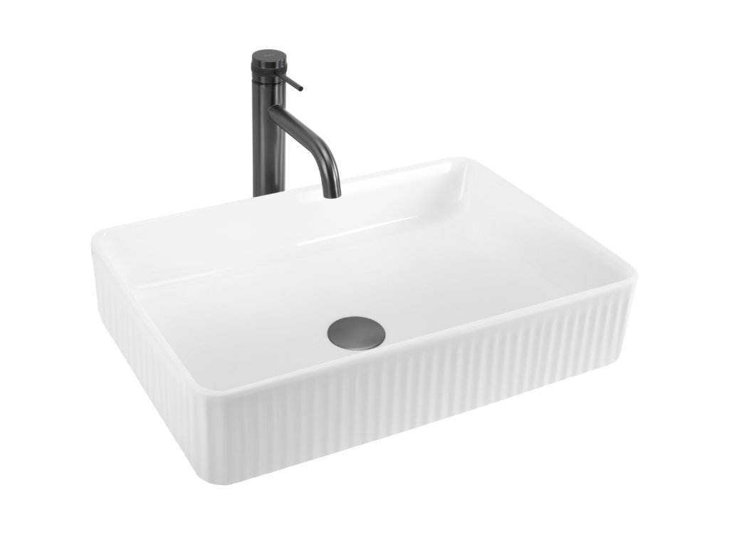 Představujeme vám umyvadlo na desku, které dodá vaší koupelně moderní vzhled a vysokou funkčnost. Umyvadlo je vyrobeno z vysoce kvalitní sanitární keramiky. Vnější povrch je rýhovaný, což vytváří zajímavý vizuální efekt dodávající vaší koupelně jedinečný charakter.