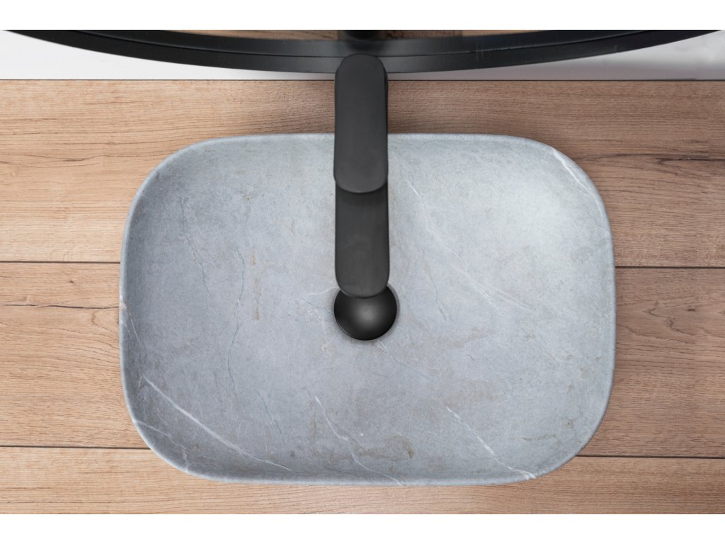 Designové, moderní umyvadlo unikátní a originální svým tvarem a imitací kamene. Díky technologii, kterou bylo umyvadlo vyrobeno, má každý kus jedinečný vzhled díky vzoru. Proto, pokud se rozhodnete právě pro toto umyvadlo, si můžete být jistí, že budete vlastnit originální kousek. Umyvadlo je určeno k montáži na desku.