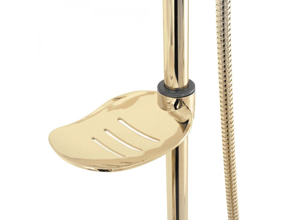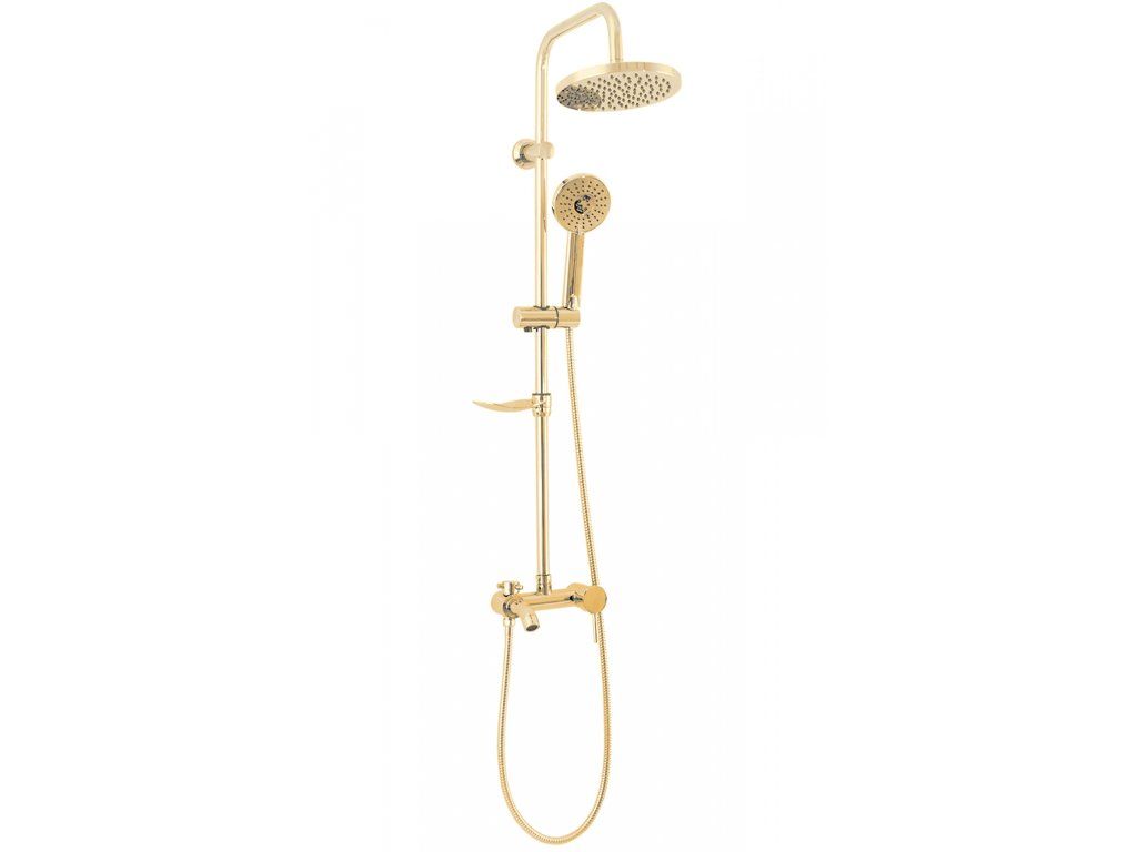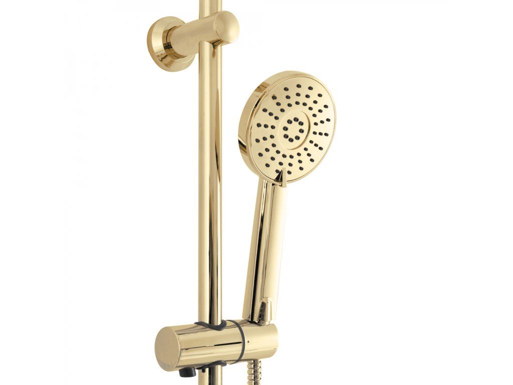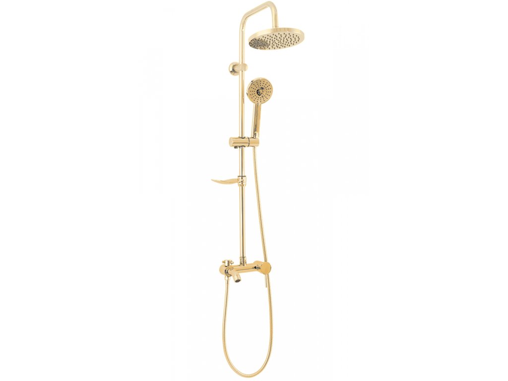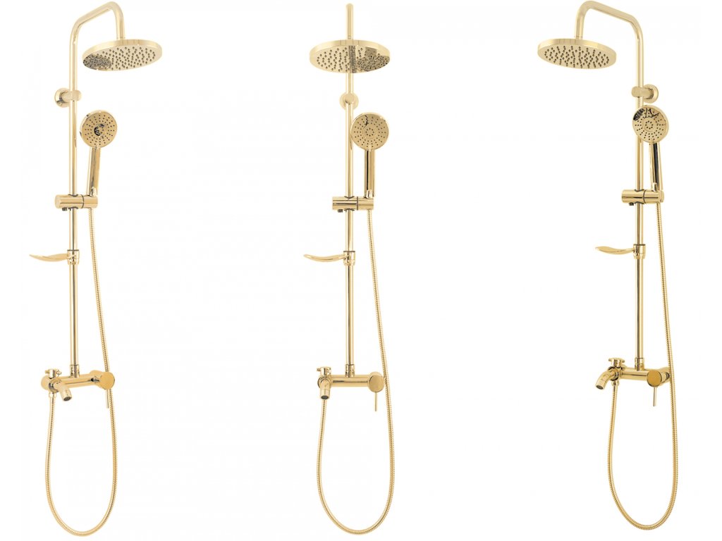 Sprchový set Luis včetně baterie - celý ve zlaté lesklé barvě. Hodí se do klasické, moderní i retro koupelny. Moderní jedinečný design a vysoká kvalita použitých materiálů zaručují dlouhou životnost a spolehlivost. Díky sprchovému setu Luis zažijete pohodlí při každodenním sprchování. Součástí je hlavová sprcha (dešťová sprcha), ruční sprcha, hadice, baterie a mýdlenka.