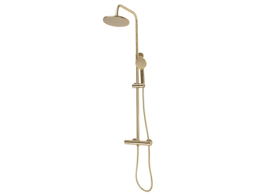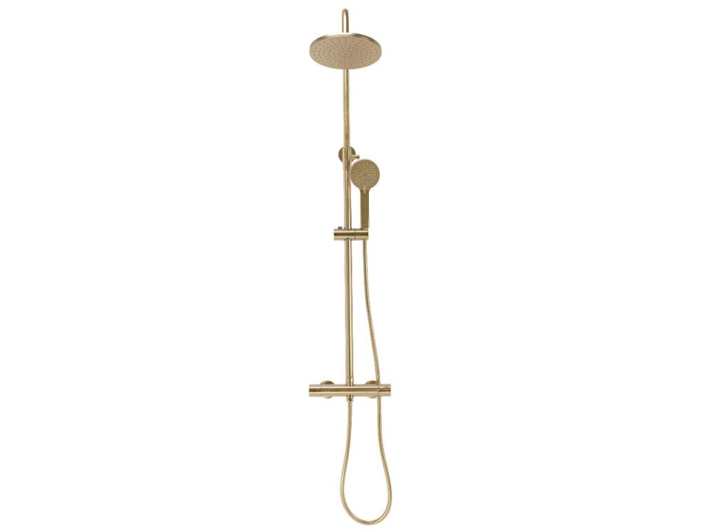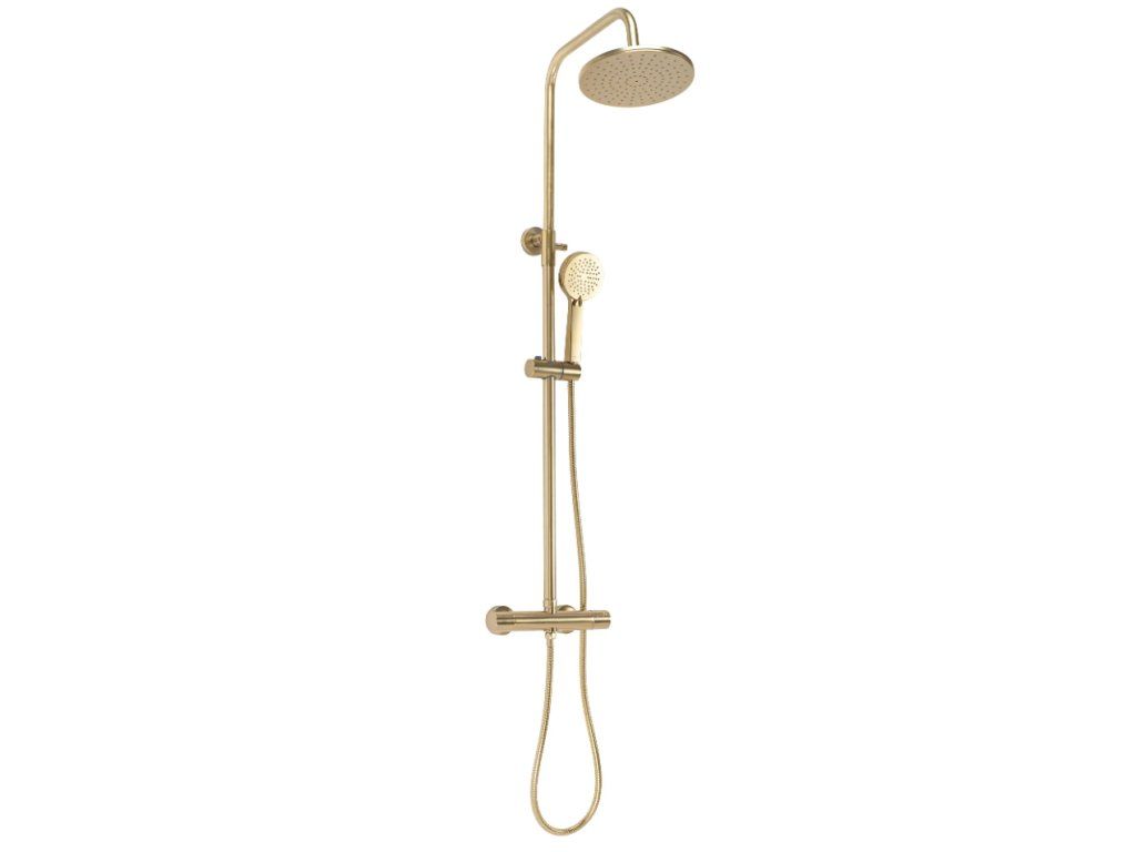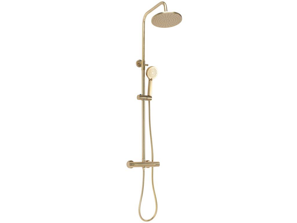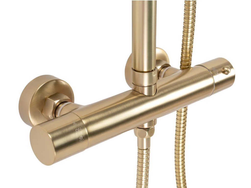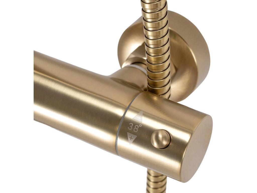 Designový termostatický sprchový set ze série Gold Edition v broušené zlaté povrchové úpravě. Při výrobě těchto setů je používána nejlepší technologie, aby každý zažil co největší pohodlí při každodenním sprchování. Vysoká kvalita materiálů zajišťuje trvanlivost a spolehlivost po mnoho let.