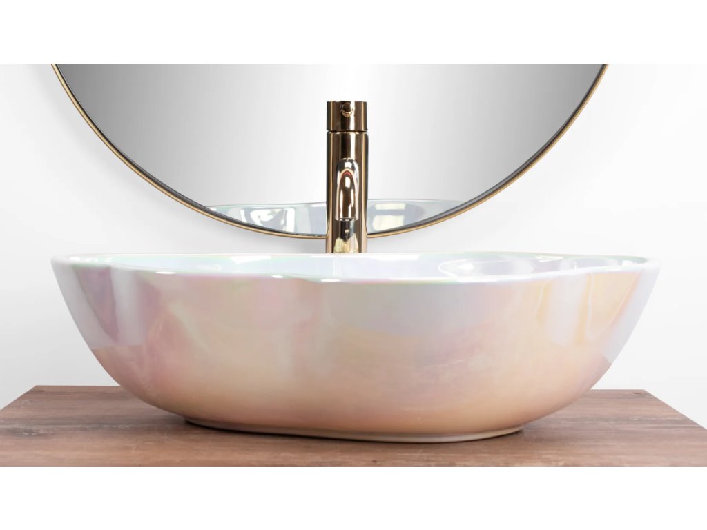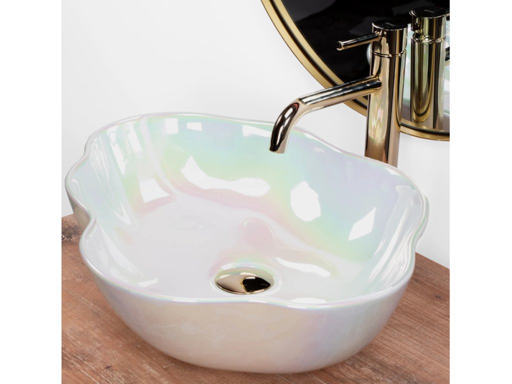 Představujeme Vám moderní, unikátní umyvadlo v perlové úpravě a v neobvyklém tvaru. Umyvadlo Pearl přinese eleganci do Vaší koupelny, kde se může stát jemným, ale nepřehlédnutelným doplňkem. Zaměříme-li se na jedinečnost a originalitu této barvy, konečný efekt jistě získá lehkost a designový nádech. Je vyrobeno z vysoce kvalitní sanitární keramiky. Umyvadlo je odolné vůči nečistotám a jeho údržba je tím jednoduchá.