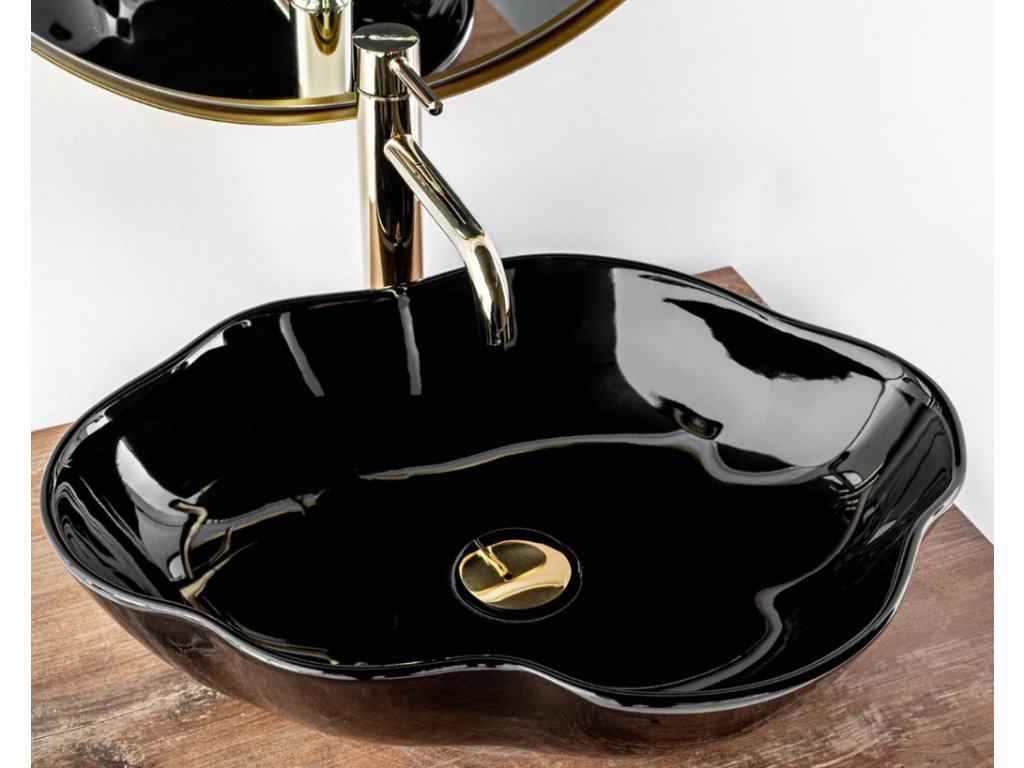 Umyvadlo je vyrobeno z vysoce kvalitní keramiky v černé barvě a nepravidelném zvlněném tvaru. Lesklá povrchová úprava dodá interiéru nádech noblesy a zároveň ho ozdobí. Bude skvělým doplňkem pro milovníky nestandardních tvarů a vnese eleganci do koupelnových úprav doma. Umyvadlo je vhodné k montáži na desku nebo na skříňku. Je vyrobeno z vysoce kvalitní sanitární keramiky. Díky speciální fázi výroby je odolné a snadno se čistí.
