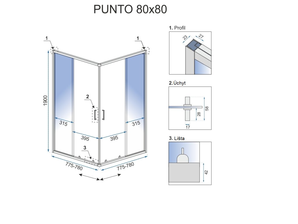 Specifikace sprchového koutu Punto
