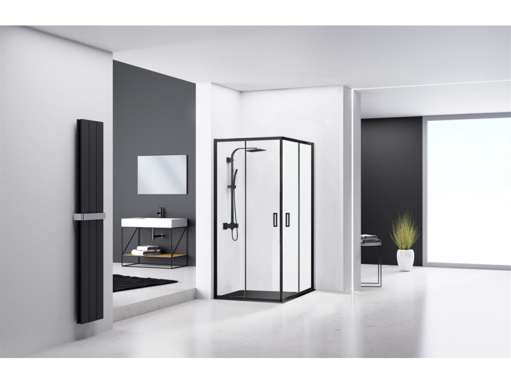 Tyto rozměry jsou jedny z nejprodávanějších a nejobvyklejších variant sprchových koutů. Poskytne dostatek místa pro pohodlné osprchování a zároveň není tolik náročný na prostor v koupelně. Punto je výrazný, nadčasový a designový sprchový kout, který je vyroben z těch nejkvalitnějších materiálů. Černá je hlavním lídrem na trhu interiérů koupelen a proto jeho černé profily dodají koutu ten správný nádech moderny. Skla jsou odolná vůči nečistotám, skvrnám a snadno se čistí. Kombinace černých profilů a černého svislého hranatého úchytu spolu s transparentním sklem dokonale ladí s moderní trendy koupelnou. Doporučujeme nahlédnout do naší nabídky sprchových setů.