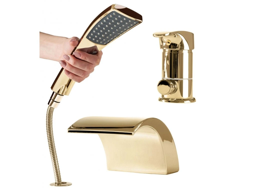 Vanový komplet Riven je nejlepší kombinací moderny a krásné jednoduchosti. Komplet se skládá ze tří částí - ruční sprcha, vodopád a ovládací páčka. Všechny tyto části jsou potaženy trojitou vrstvou zlaté barvy, která chrání před korozí. Tento komplet se dokonale hodí do každého koupelnového prostoru. Skvěle vypadající lesklá zlatá barva zvýší eleganci a ozdobí každou koupelnu.
