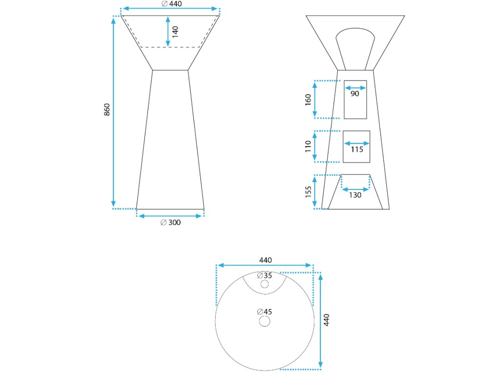 - rozměry - 44 x 44 x 86 cm (délka, šířka, výška)