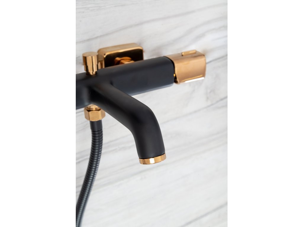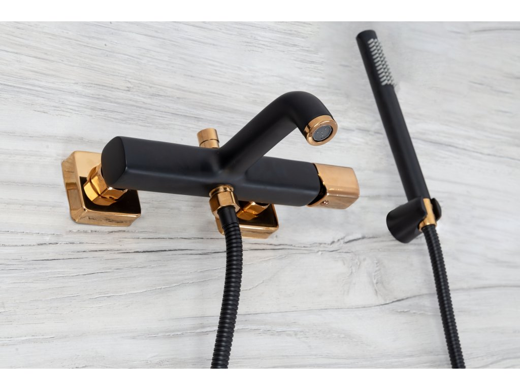 Velice moderní, designový vanový komplet Salto. Komplet obsahuje 150 cm dlouhou hadici. Tento komplet je skvělou volbou pro majitele každé koupelny. Je chráněna proti poškození a vyblednutí barvy. Zlaté prvky jsou už jen třešničkou na dortu.