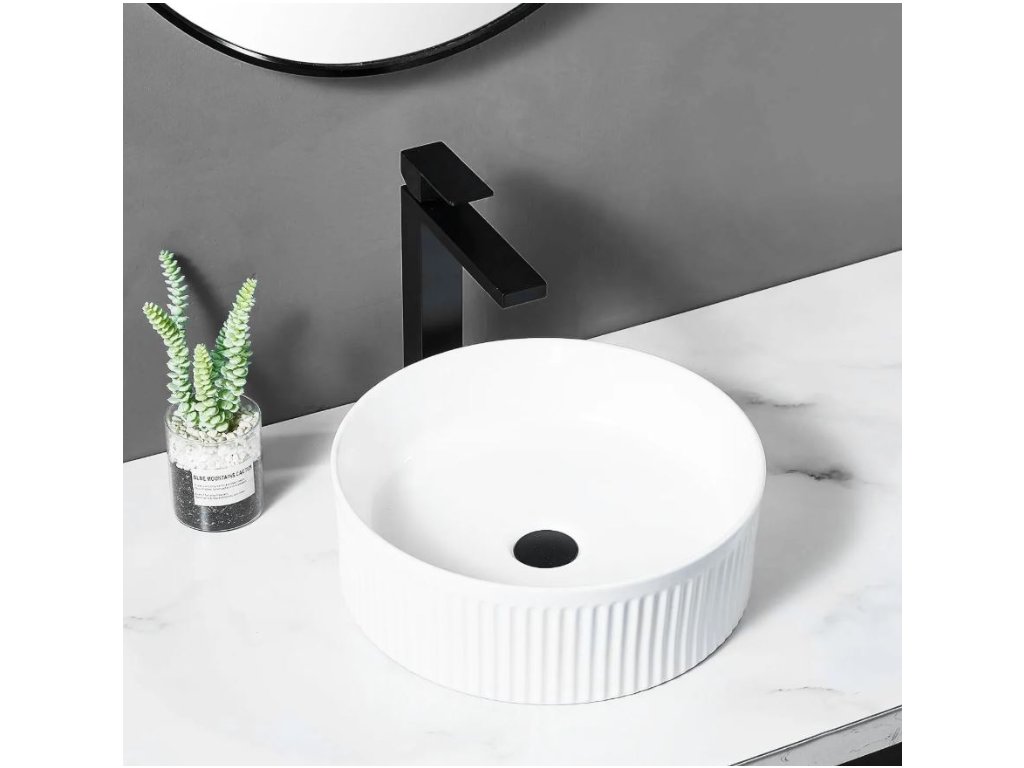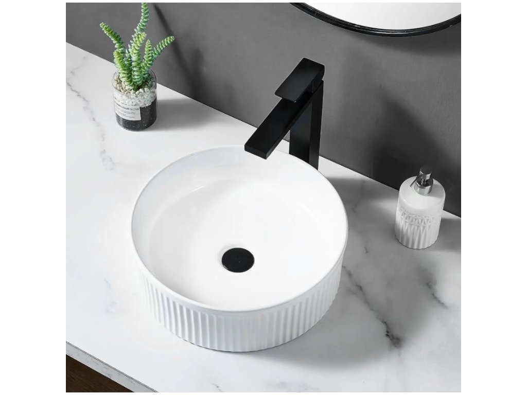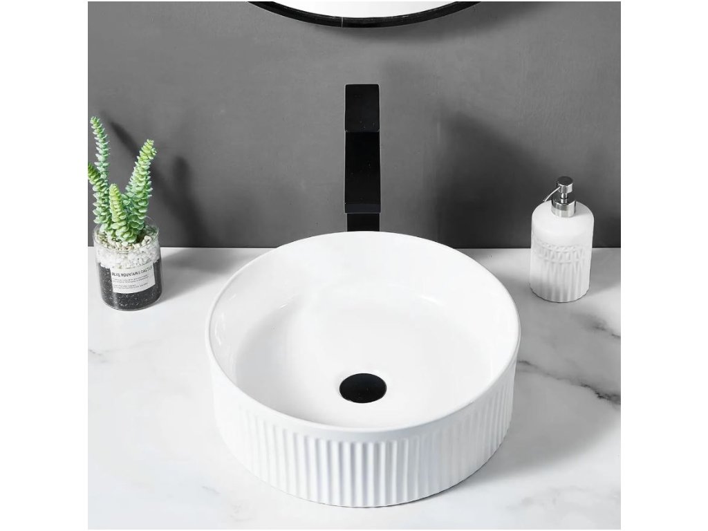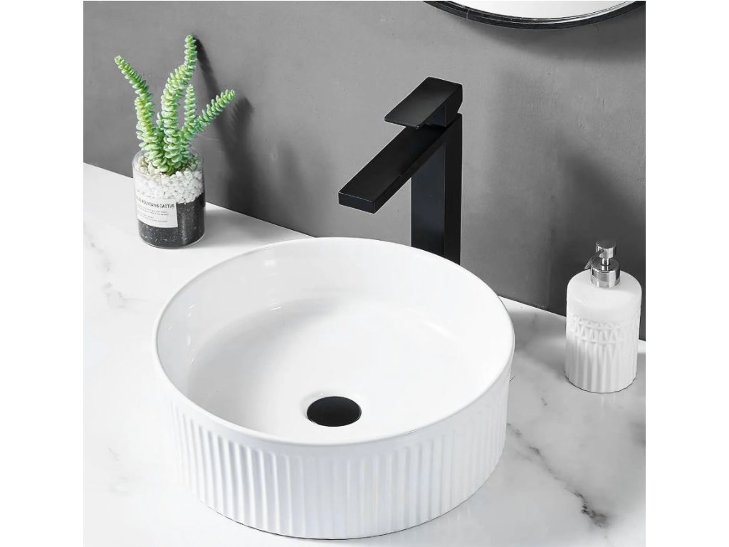 Představujeme vám umyvadlo na desku, které dodá vaší koupelně moderní vzhled a vysokou funkčnost. Umyvadlo je vyrobeno z vysoce kvalitní sanitární keramiky. Vnější povrch je rýhovaný, což vytváří zajímavý vizuální efekt dodávající vaší koupelně jedinečný charakter.