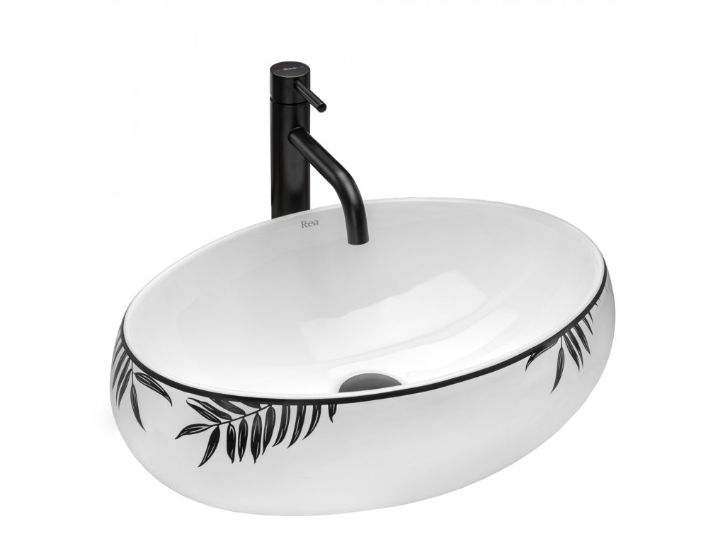 Originální umyvadlo Shila ve sněhově bílé barvě v lesku s černým dekorem lístečků dodá Vaší koupelně ten správný směr. Je vyrobeno z vysoce kvalitní sanitární keramiky a díky speciální povrchové úpravě je odolné a snadno se čistí.