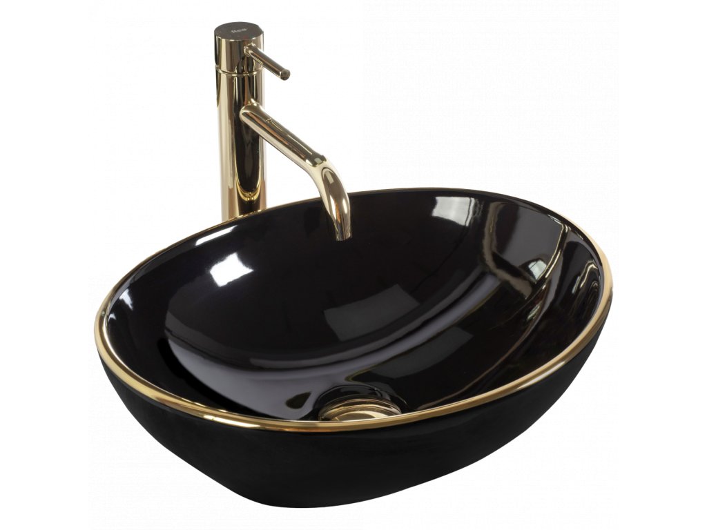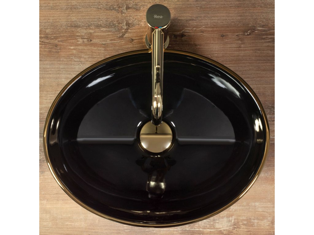 Rea Sofia black 63 umyvadlo na desku, gold edges, REA-U3695