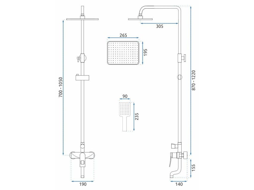 - hlavová sprcha - vysoce kvalitní nerezová ocel, AntiCalc systém - libovolné umístění dešťové sprchy (pohyblivé kolínko)