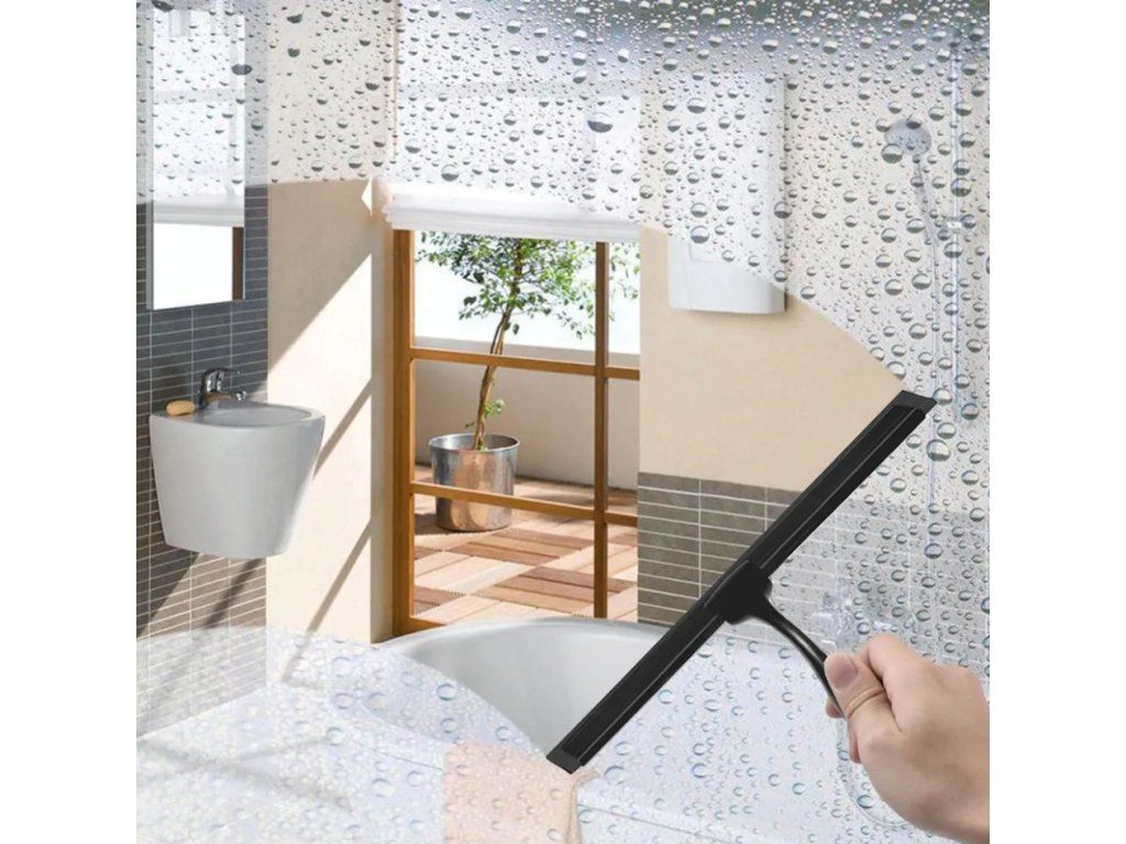 Elegantní koupelnová stěrka s rukojetí a držáku je dokonalým řešením pro udržení čistoty v koupelně. Díky stěrce snadno a rychle odstraníte přebytečnou vodu z povrchu skla bez vytváření nežádoucích šmouh. Sada obsahuje držák, který lze namontovat na zeď bez vrtání.