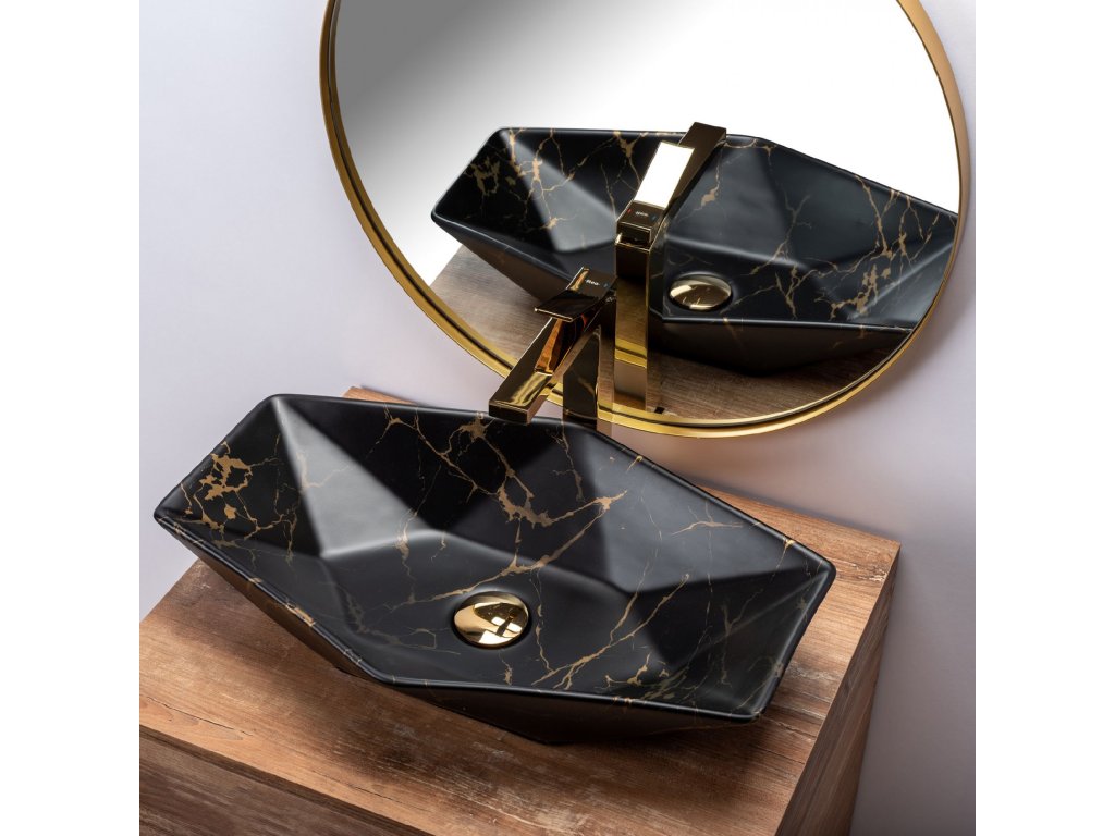 Představujeme Vám naprosto originální umyvadlo v černé barvě se zlatým zdobením. Umyvadlo Vegas vnese krásu do Vaší koupelny, může se stát jemným, ale nepřehlédnutelným doplňkem. Je vyrobeno z vysoce kvalitní sanitární keramiky. Umyvadlo je odolné vůči nečistotám a jeho údržba je tím jednoduchá.