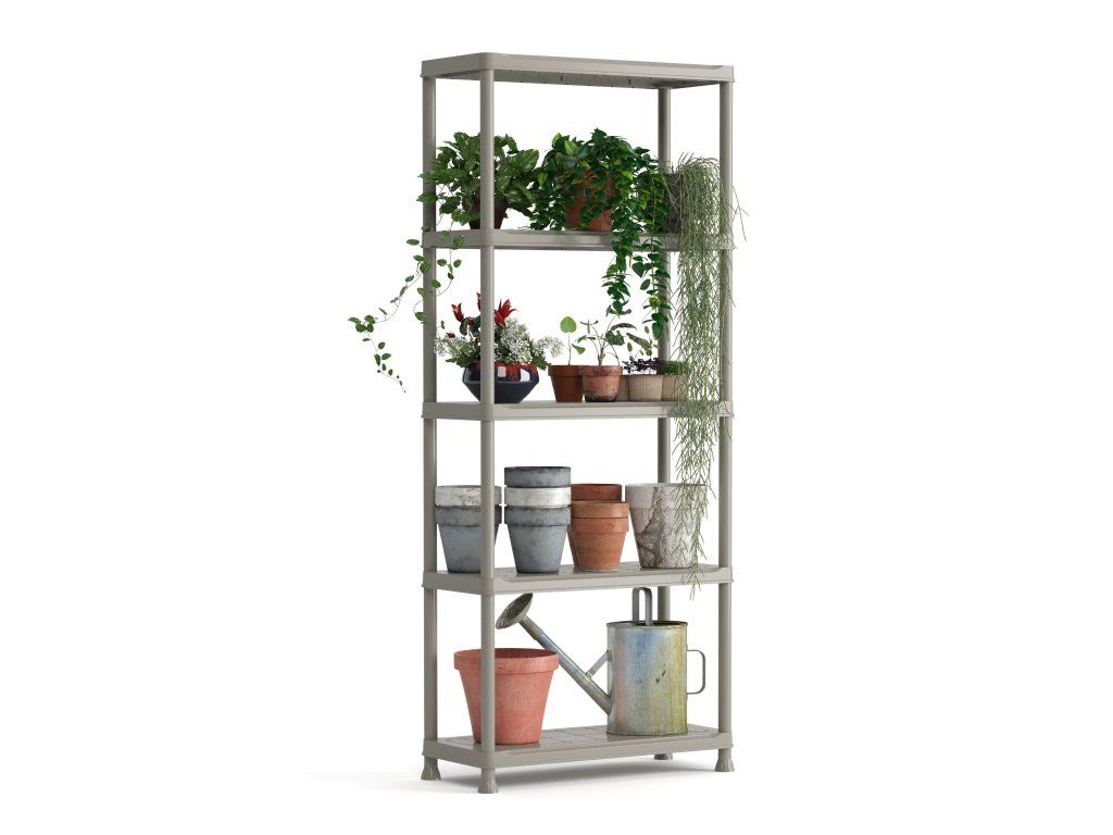 - Vhodný i pro skladování zahradnických potřeb, květináčů a vystavování květin