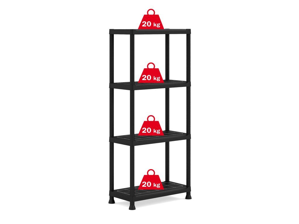 Regál obsahuje celkem 4 police s velkou nosností, které unesou i výrazně těžší předměty všeho druhu. Lze ho tedy využít pro skladování dílenského nářadí či zahradnických potřeb, kdy přijde vhod pro uložení náčiní, které by se jinam nevešlo. Regál rovněž můžete přimontovat na zeď pro větší stabilitu. Díky svému provedení v univerzální černé barvě vhodně doplní každý prostor.