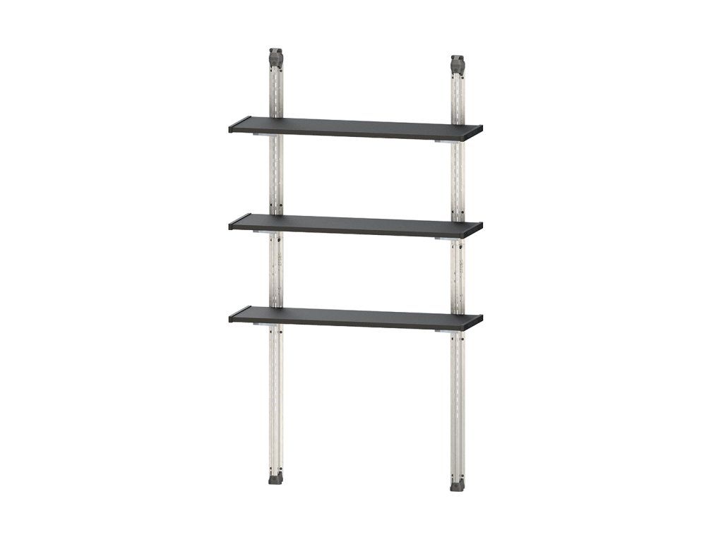 3 police zpevněné ocelí uchytíte na kolejnice. Výšku každé z nich si přizpůsobíte tak, abyste na ně bez problému dosáhli. Jedna police unese až 30 kg zátěže. Regál vám umožní zorganizovat zahradní náčiní, nářadí, štětce, plechovky, polštáře, hračky nebo cokoliv jiného, co v domku Keter skladujete.