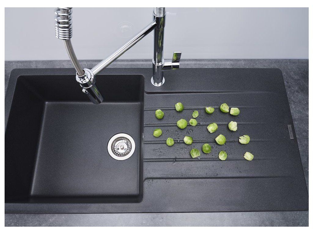 Navíc je k dispozici opravdu velká odkapávací plocha, která už na první pohled láme stereotyp nudného kuchyňského dřezu.