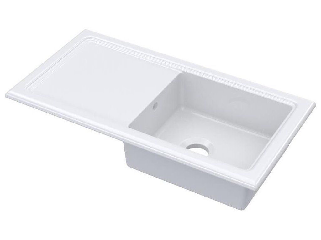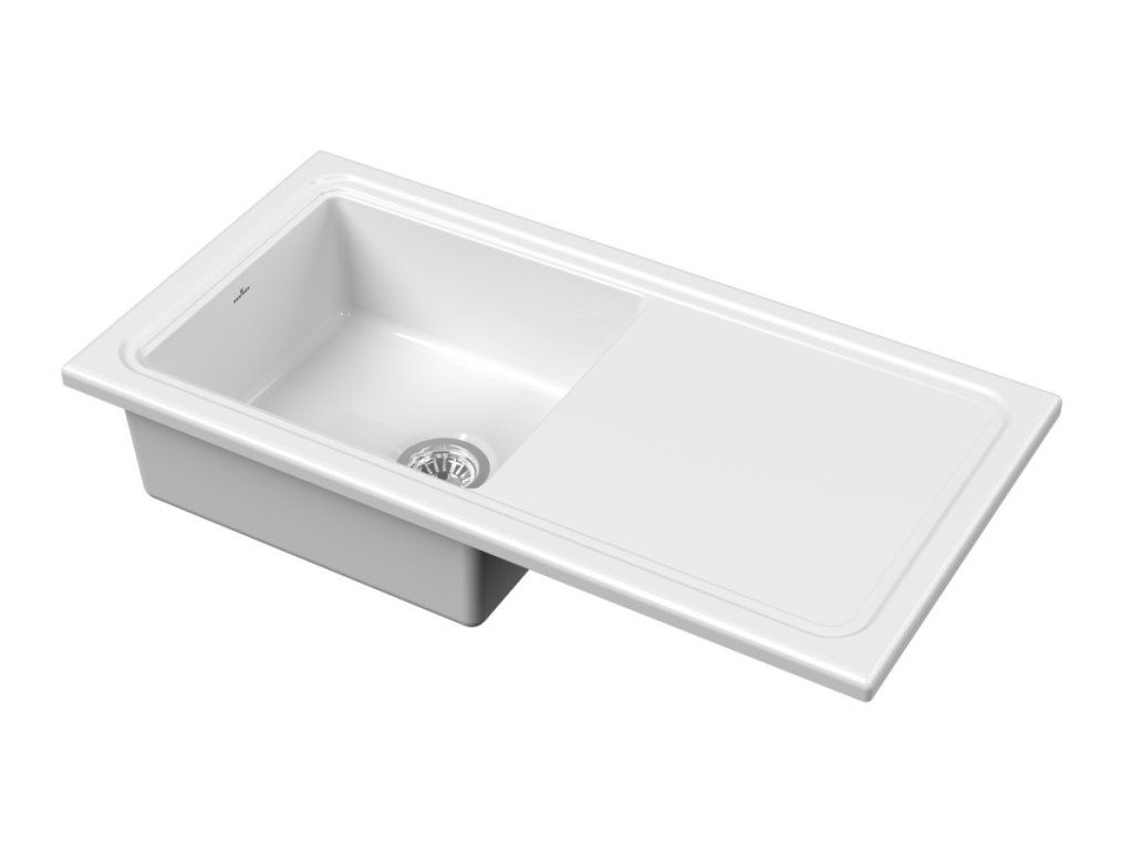 - zářivě bílý keramický dřez ve vysokém lesku s odkapávačem