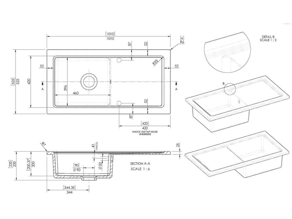 Poznámka: Keramický dřez je vypalován v pecích a glazura je nanášena ručně, každý kus se tím pádem stává originálem. Je nutno počítat s /- 1-1,5 cm toleranci rozměru. Doporučujeme, pro zrealizování kuchyňské linky, mít dřez fyzicky u sebe.