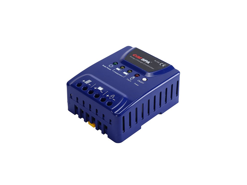 Regulátor Carspa CD12/24-20 optimalizuje výstupní napětí a proud z fotovoltaického solárního panelu 12 V do výkonu 240 W. Panel s akumulátorem připojíte k regulátoru a na výstupu získáte stabilizované napětí 12 V. Maximální nabíjecí i zátěžový proud je 20 A (pro panely do 240 W). Regulátor automaticky detekuje napětí solárního panelu a nastaví ho na odpovídající hodnotu – 12 V nebo 24 V.