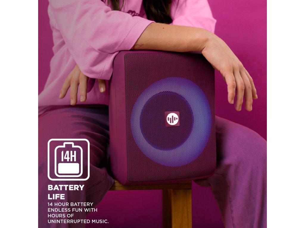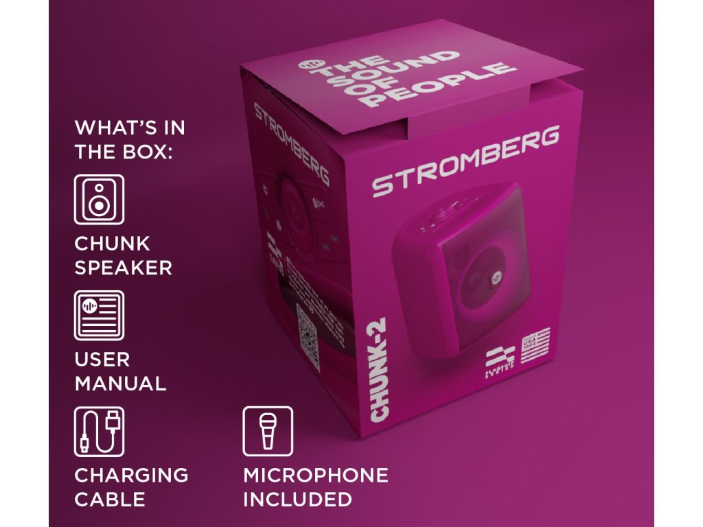 Stromberg CHUNK vás překvapí nejen svým stylovým vzhledem ve výrazné barvě, ale také funkcemi, které oceníte doma i venku. V balení najdete kabelový mikrofon, díky kterému můžete snadno spustit karaoke nebo vést prezentaci. Funkce TWS umožňuje propojení dvou jednotek pro stereo efekt a IPX4 krytí zajistí ochranu před stříkající vodou. Díky hmotnosti 2,3 kg a kompaktním rozměrům si reproduktor vezmete kamkoliv s sebou.