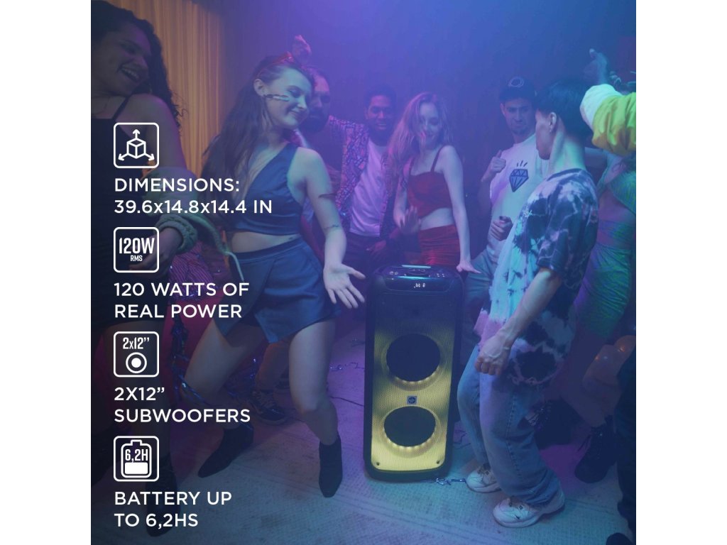 Díky dvěma 12" subwooferům a 3" tweeteru nabídne TEMPO-2 mohutný zvukový výstup, který ozvučí i větší prostor. Balení zahrnuje kabelový mikrofon, který oceníte při moderování, zpěvu nebo prezentaci. Možnost připojit další dva mikrofony dělá z tohoto reproduktoru ideální nástroj pro karaoke show nebo společenské akce.
