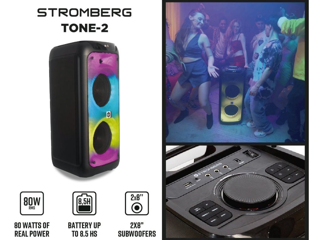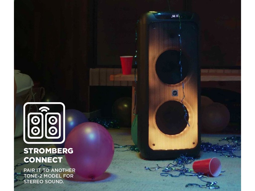 Stromberg TONE-2 – výkonný Bluetooth reproduktor, který rozzáří každou akci. S RGB LED podsvícením, výkonem 80 W a mikrofonem v balení je ideální volbou pro večírky, karaoke i domácí poslech. Technologie Stromberg Connect umožní propojení dvou jednotek a vytvoření stereo efektu. Díky výdrži až 8,5 hodiny si užijete hudbu bez přerušení, ať jste kdekoli.