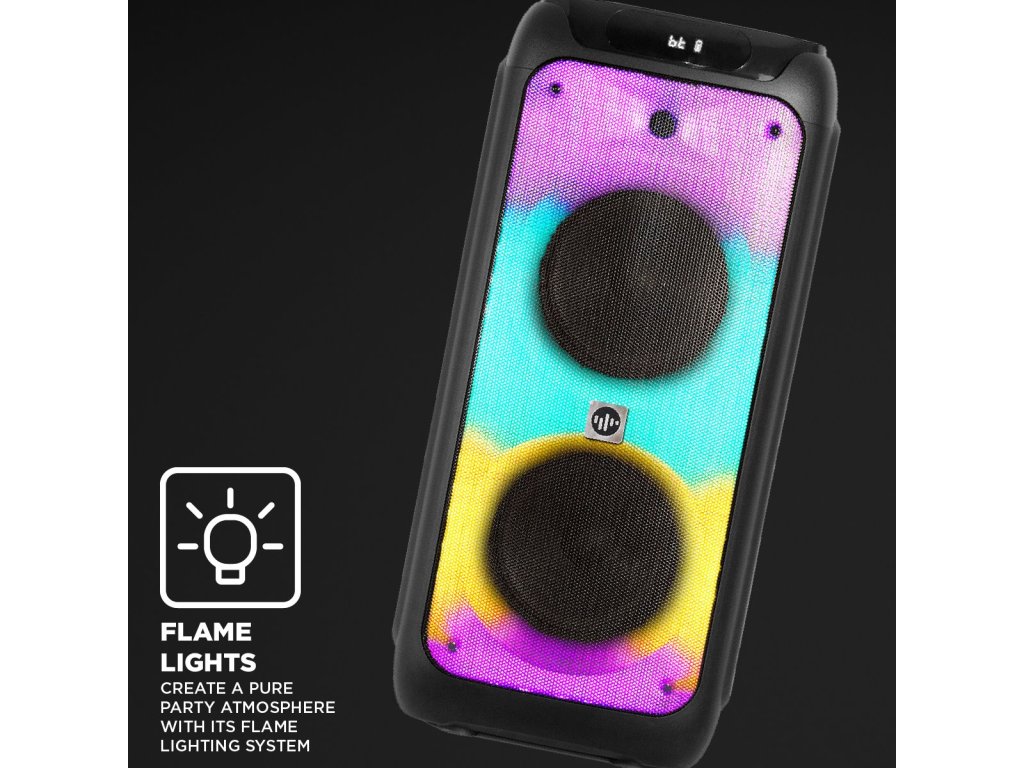Reproduktor TONE-2 je vybaven dvěma 8" subwoofery a jedním 3" tweeterem, které společně zajišťují vyvážený zvuk s výraznými basy. V balení najdete kabelový mikrofon, díky kterému si užijete karaoke, moderování nebo prezentaci. S připojením dalších dvou mikrofonů se hodí i pro skupinové akce.