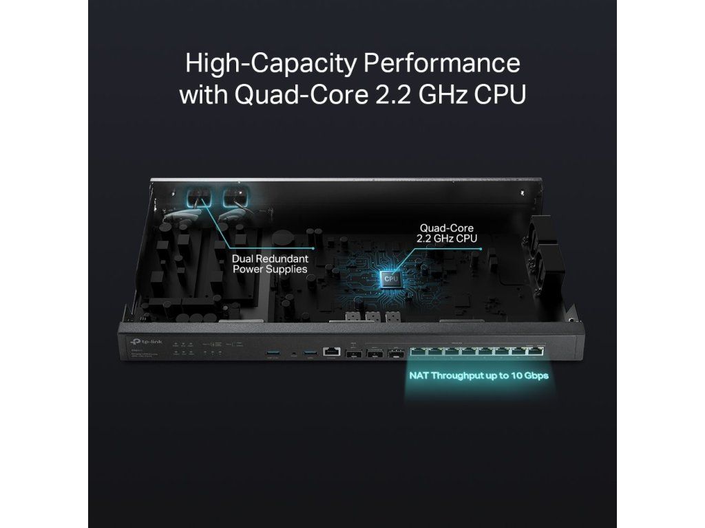 Router TP-Link Omada ER8411 vám díky duálním redundantním napájecím zdrojům zajistí spolehlivost. Vytvoříte s ním vysokorychlostní a bezpečnou podnikovou síť. Převážně se hodí pro větší podniky - do kanceláří, škol a hotelů.