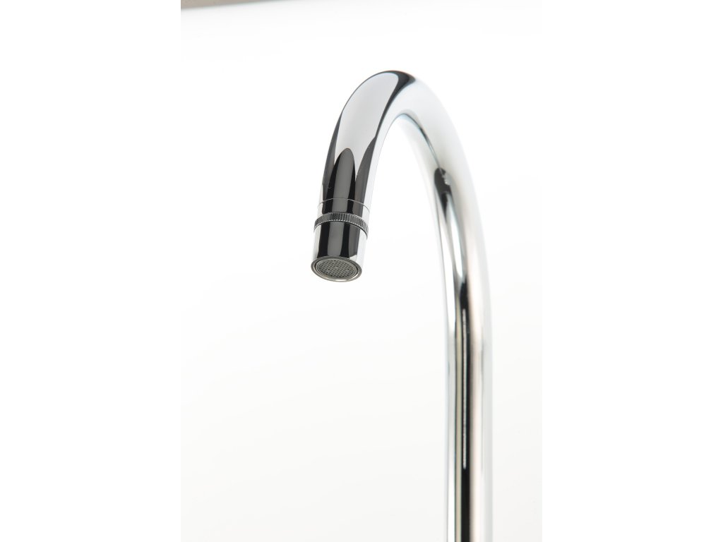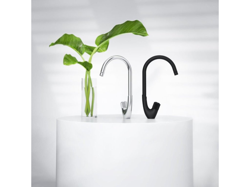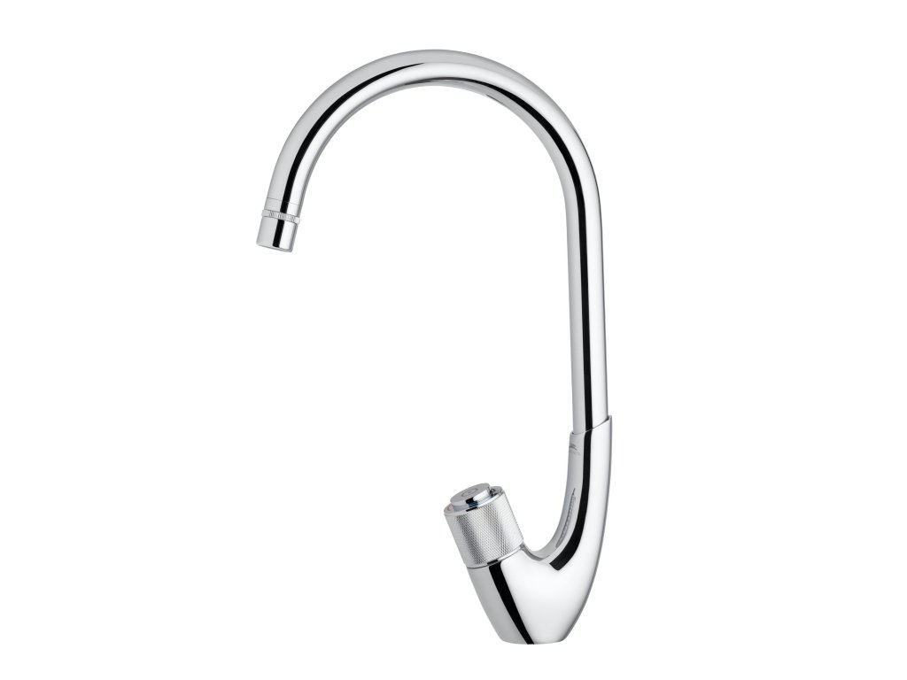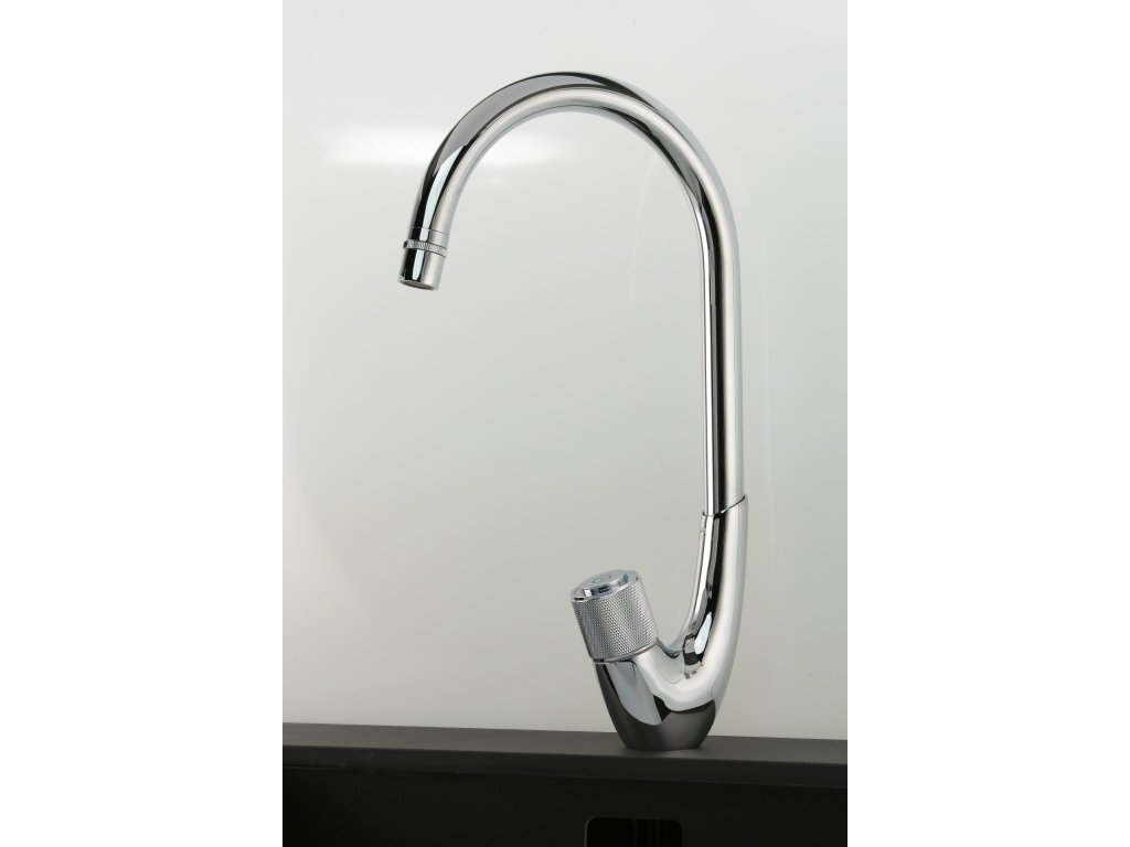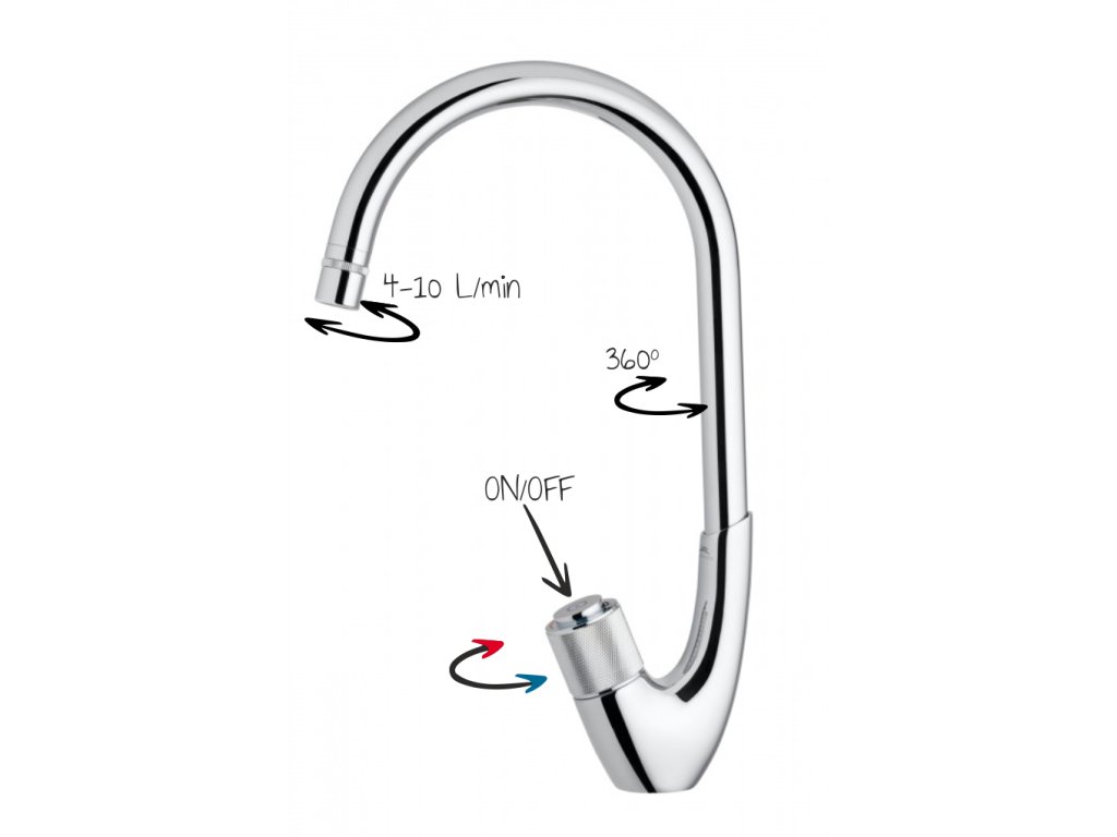 Dřezová stojánková vodovodní baterie SWAN-33 s atraktivním obloukovým výtokovým ramenem podtrhne moderní design každé kuchyně. Baterie je unikátní svým tlačítkem pro spuštění a zastavení proudu.